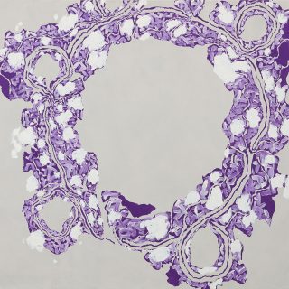 本展で圧巻だったのは、1980年以降から最晩年までに描かれた大作が一気に並べられた後半部分だ。特に印象に残ったのは《紫・むらさきXVIII》(1983)など紫を使った作品。中西は、独自の三原色として「オレンジ、緑、紫」を定義づけた。彼が用いる紫はなんとも言えず美しい。図録によると、過去中西は染料系の透明な絵の具モーヴ・レッドシェードをジンクホワイトで調整し不透明な紫色にして使用していると明かしたという。