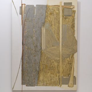 この時期の代表作のひとつ《洗濯バサミは攪拌行動を主張する》(1963)が展示されていた。複数のキャンバス上には無数の洗濯バサミが取り付けられ一部は山のようになっており、構造を理解するのに時間がかかった。もはや絵画というよりもオブジェに近い。同作からは絵画の制度そのものを疑い、「絵画から脱する」という中西の気迫のようなものを感じた。