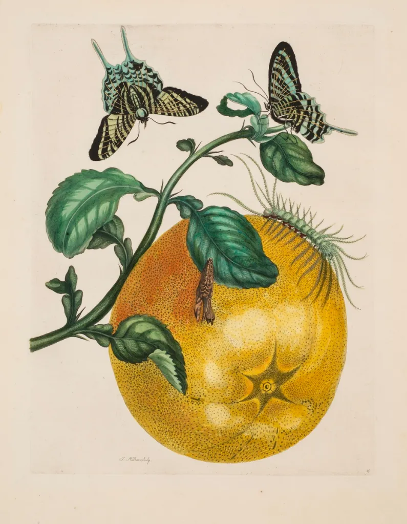 ドイツ生まれのマリア・シビラ・メーリアン(1647-1717)は自然科学者としても活躍した。特に昆虫学における功績は高く評価されている。マリア・シビラ・メーリアン《Plate 29 from Dissertation in Insect Generations and Metamorphosis in Surinam, 2nd edition》(1719)Photo: Collection of the National Museum of Women in the Arts, Washington DC. Photo: Lee Stalsworth, Fine Art through Photography, LLC