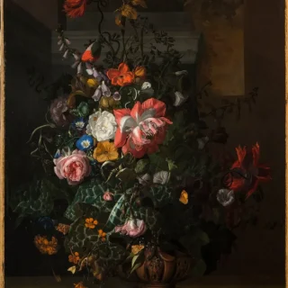 オランダ人静物画家のラッヘル・ライス(1664-1750)は、女性オールドマスターの中でも特に高い人気を誇る。ラッヘル・ライス《Roses, Convolvulus, Poppies, and Other Flowers in an Urn on a Stone Ledge》(1680年代後半)Photo: Collection of the National Museum of Women in the Arts, Washington, DC. Photo: Lee Stalsworth, Fine Art through Photography, LLC