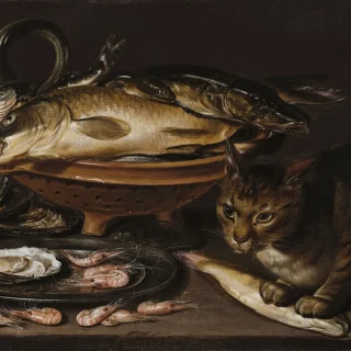 マドリードのプラド美術館で大々的に紹介されたフランドル人画家クララ・ペーテルス(1587-1636頃)。同館で女性画家に特化した展覧会が開かれたのはこれが初めてだった。クララ・ペーテルス《Still Life of Fish and Cat》(1620年以降) Photo: Collection of the National Museum of Women in the Arts, Washington D.C.