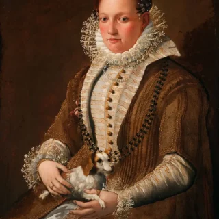 イタリア・ボローニャ生まれのラヴィニア・フォンターナ(1552-1614)は修道院や宮廷以外で画家を職業としたヨーロッパ初の女性だった。ラヴィニア・フォンターナ《犬を連れた婦人の肖像》(1590年代) Photo: Collection of the Auckland Art Gallery Toi o Tāmaki. Digital image: Wikimedia Commons