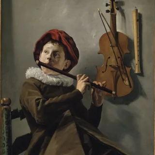 オランダ黄金時代の画家ユディト・レイステル(1609-1660)「虫の目線」と呼ばれる下から見上げたような構図や、ドラマチックな照明などの特徴があり、特に後者はオランダ美術への重要な貢献だとされている。ユディト・レイステル《フルートを吹く少年》(1630年代初期) Photo: Collection of the Nationalmuseum, Stockholm. Digital image: Wikimedia Commons