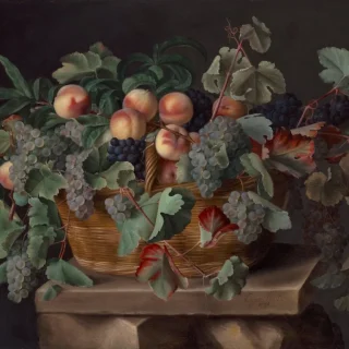 芸術家の家庭に生まれ育ったルイーズ・モワヨン(1610-1696)の丹念に描いた農作物は、珍しさや富の大げさな表現とは異なり、大地の恵みに畏敬の念を抱く彼女の謙虚さを表している。ルイーズ・モワヨン《桃とブドウのかごのある静物》(1636) Photo: National Gallery of Art, Washington D.C.