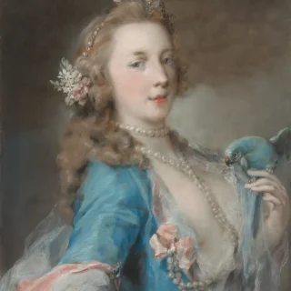 ロザルバ・カッリエーラ(1673-1757)はパステルの女王と呼ばれ、ベネチアを訪れる上流階級の人々に人気だった。当時としては珍しく取引を男性に任せずに自身で工房を運営し、女性の弟子たちがカッリエーラを助けていた。ロザルバ・カッリエーラ《オウムを持つ若い女性》(1730年頃) Photo: Art Institute of Chicago