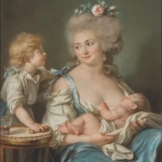 フランス革命へと向かう時期に活躍したアデライド・ラビーユ=ギアール(1749-1803)が主に制作したのはパステルや油彩の肖像画で、王家の親族を描いたものも多い。アデライド・ラビーユ=ギアール《シャルル・ミトワール夫人と子どもたちの肖像》(1783) Photo: The J. Paul Getty Museum, Los Angeles