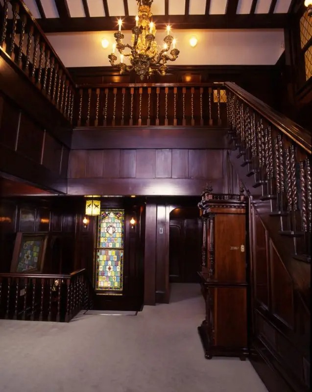 アサヒグループ大山崎山荘美術館(京都府乙訓郡大山崎町)【続きを読む】ステンドグラスなどの意匠が美しい本館の階段。Photo: アサヒグループ大山崎山荘美術館提供