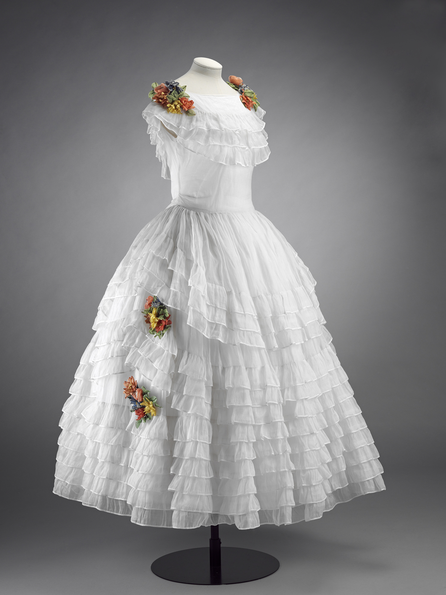 イヴニングドレス「ローブ・ド・スティル」 ジャンヌ・ランバン(作) 1922–23年頃 絹オーガンザ、絹の花かざり、パニエ ヴィクトリア&アルバート博物館蔵 © Victoria and Albert Museum, London