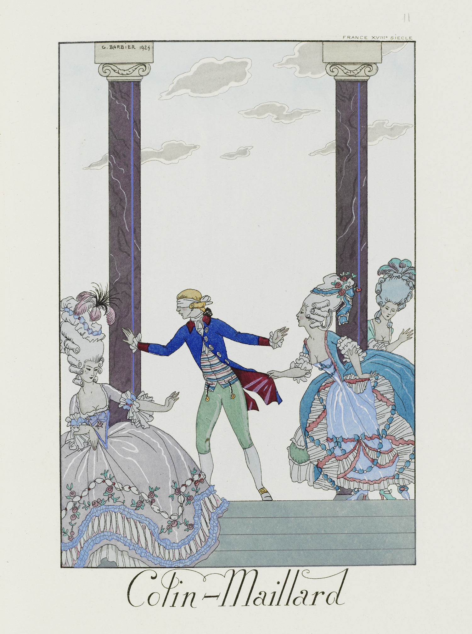 アール・デコ期を代表する挿絵画家ジョルジュ・バルビエは、時代考証をふまえつつ、1920年代の洗練された感性を通して、18世紀の服飾やインテリアを細部まで表現した。彼の挿絵にはそれとわかるようにマリー・アントワネットやヴェルサイユにおける王妃ゆかりの地が取り入れられた。